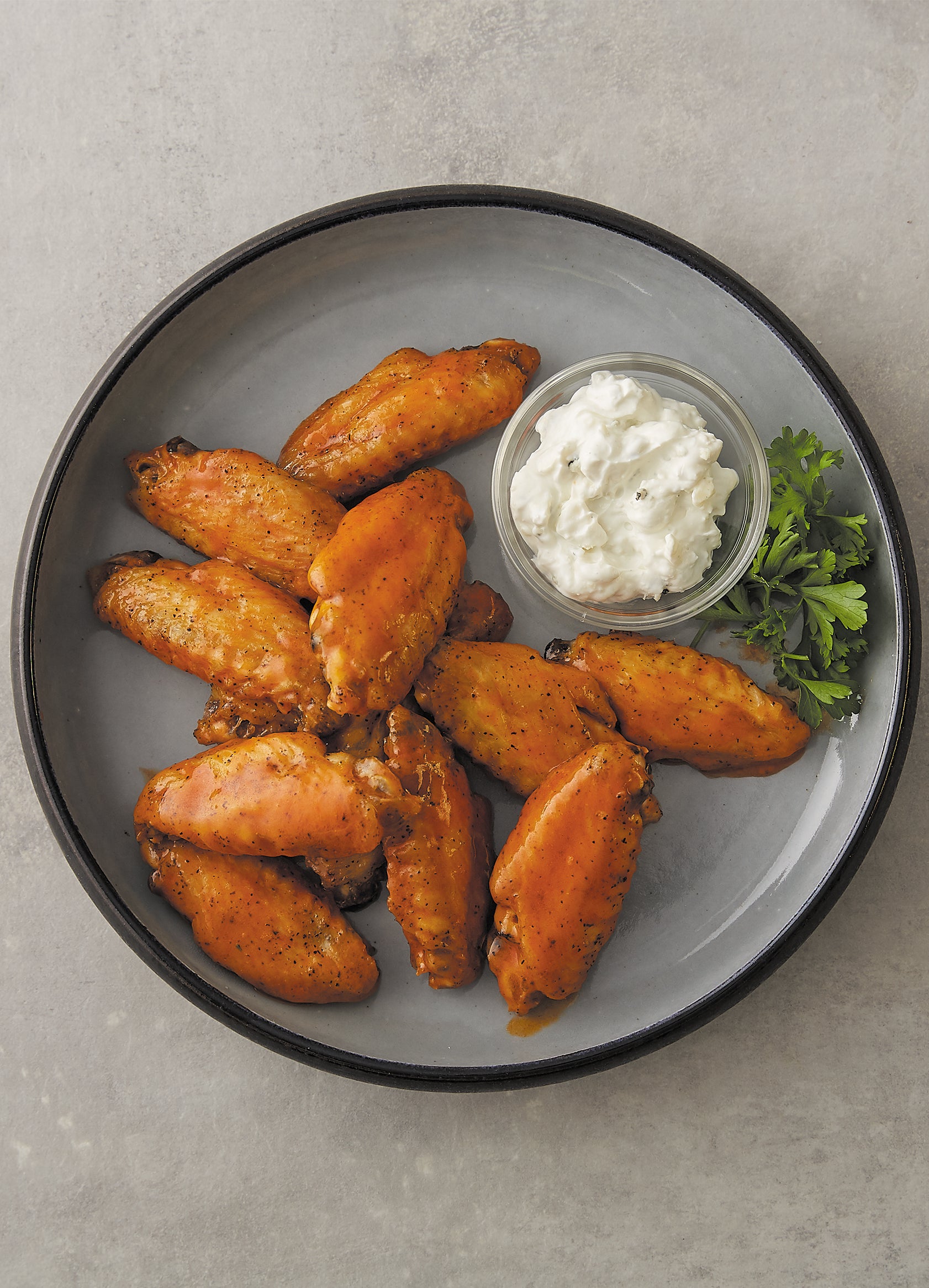 - Mezcle las alitas con la salsa de mantequilla picante y revuelva bien.