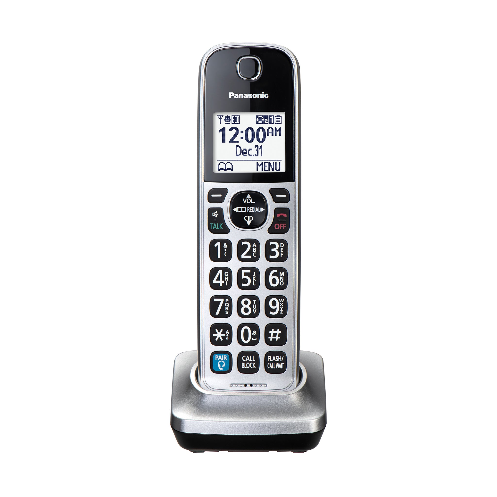 - Auricular inalámbrico adicional compatible con los teléfonos de las series KX-TGD89x y KX-TGF89x (se vende por separado) para ampliar el sistema telefónico; NO FUNCIONA POR SÍ SOLO; DEBE EMPAREJARSE CON UN SISTEMA TELEFÓNICO COMPATIBLE
