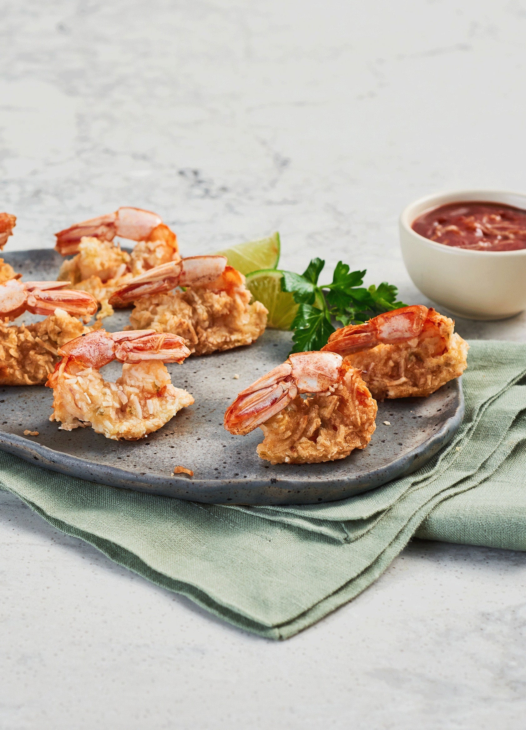 Ajoutez ce plat d'inspiration tropicale à votre entourage avec ce savoureux mélange sucré de flocons de noix de coco croustillants et de crevettes juteuses.