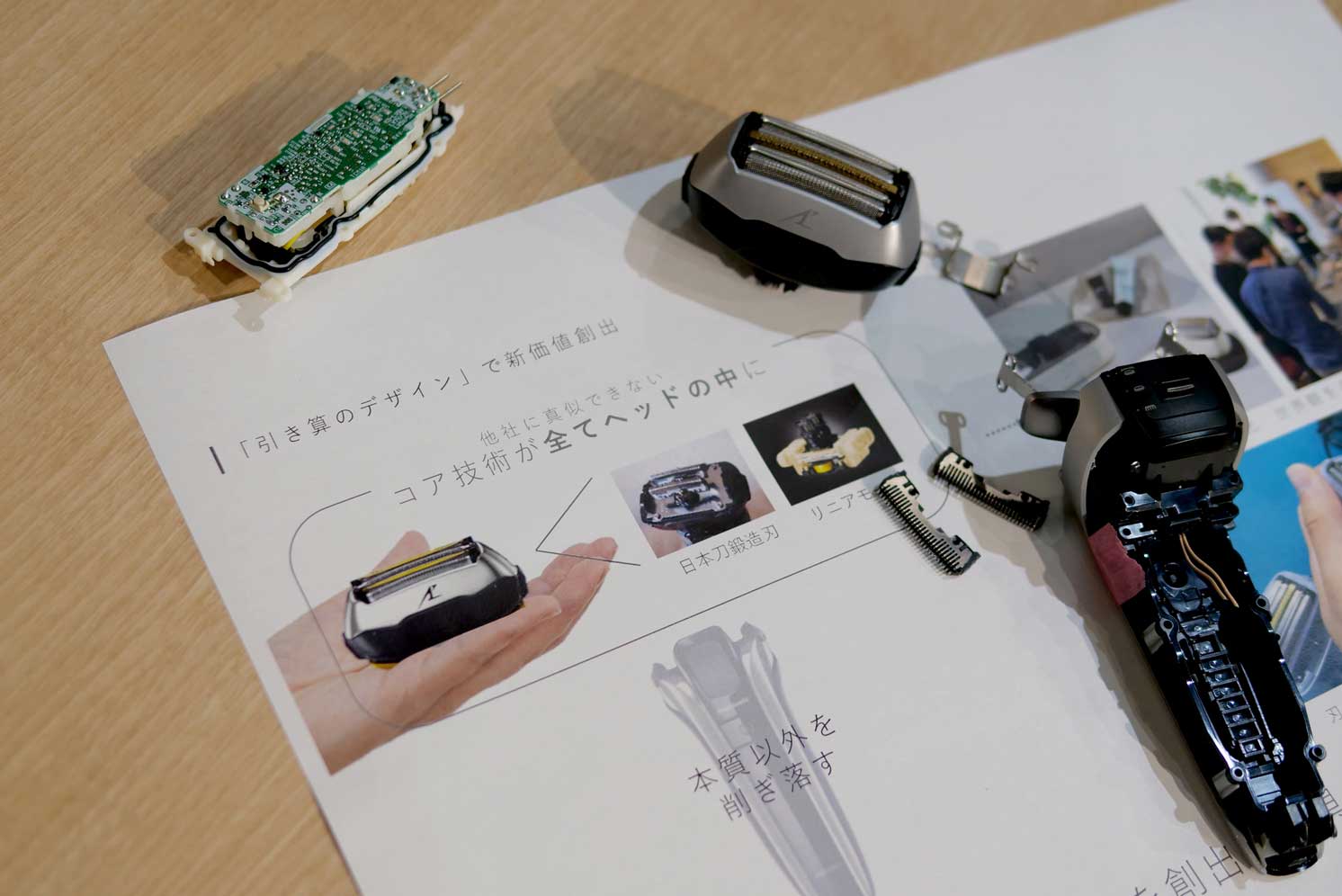A common electric shaver has a motor inside the handle, but our conventional models have a small linear motor in the head. This technology allowed us to get rid of the handle and make the iconic design unique to Panasonic."