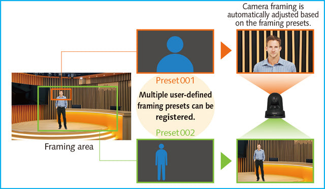 With the power of AI, Auto Framing enables professional-quality video production and provides multiple framing presets for highly efficient on-site workflows. This plug-in provides auto framing (tracking of a composed shot with one or more people in motion) for a compatible camera that may not have an internal auto framing feature.