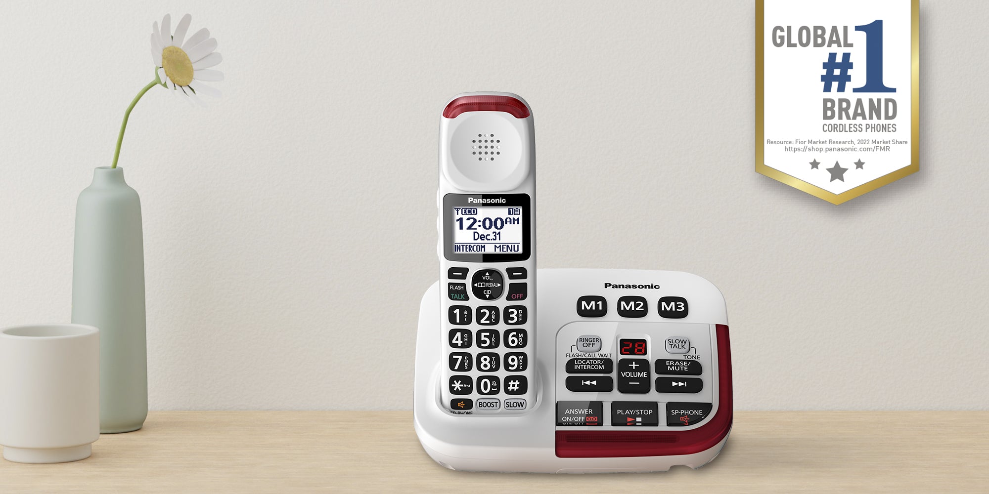 The KX-TGM420W Amplified Cordless Phone with Enhanced Noise Reduction and Digital Answering Machine makes every day call management easier and convenient. A large, 1.8-inch white backlit display and enlarged, backlit numeric dial keypad lets you choose six tones for clarifying different voice types. Boost volume for caller voice amplification up to 40 dB and set ringer tone volumes up to 100 dB