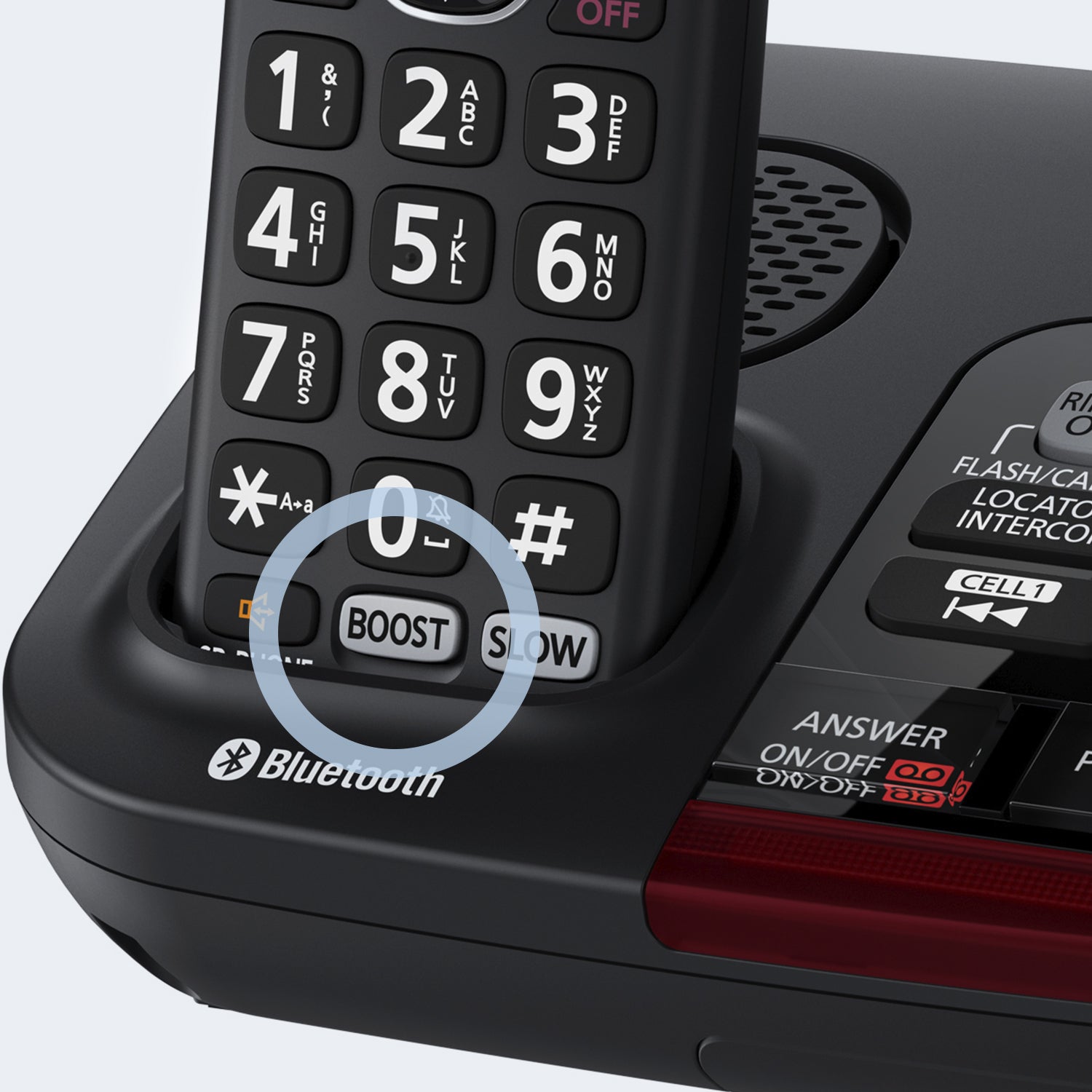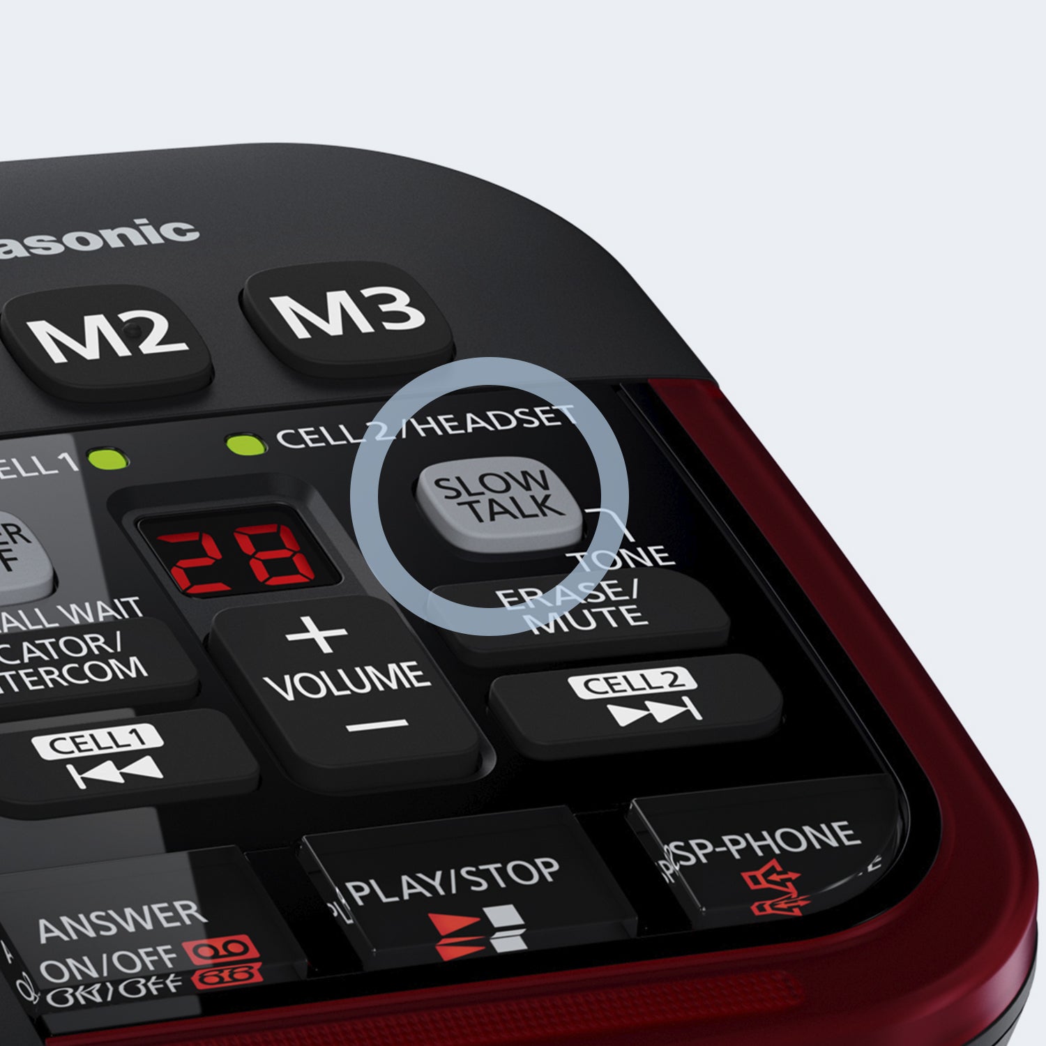 Slow Talk Mode Button on handset and base unit will make words run more slowly for clearer understanding of voice calls and messages.