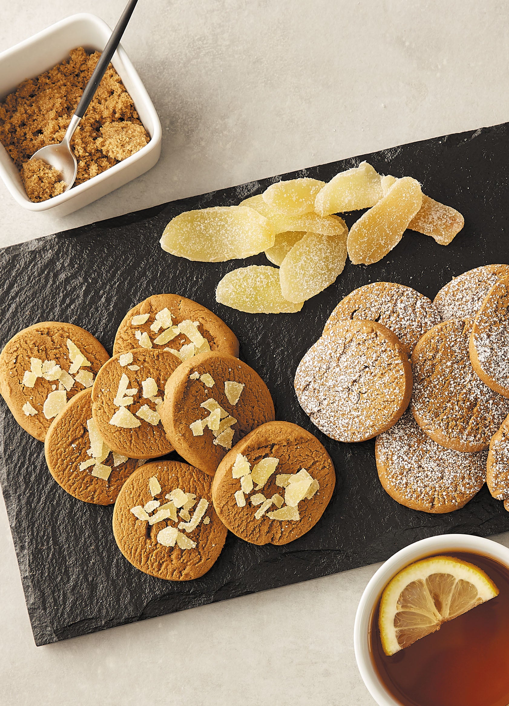 - diced candied ginger or powder sugar