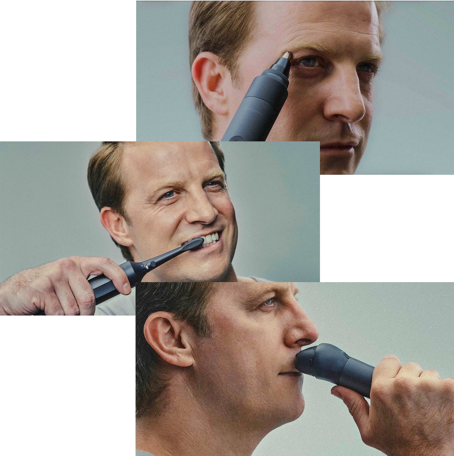 - All the essentials you need to keep your style: Including a 3-blade shaver head, ear, nose & facial hair trimmer and toothbrush head