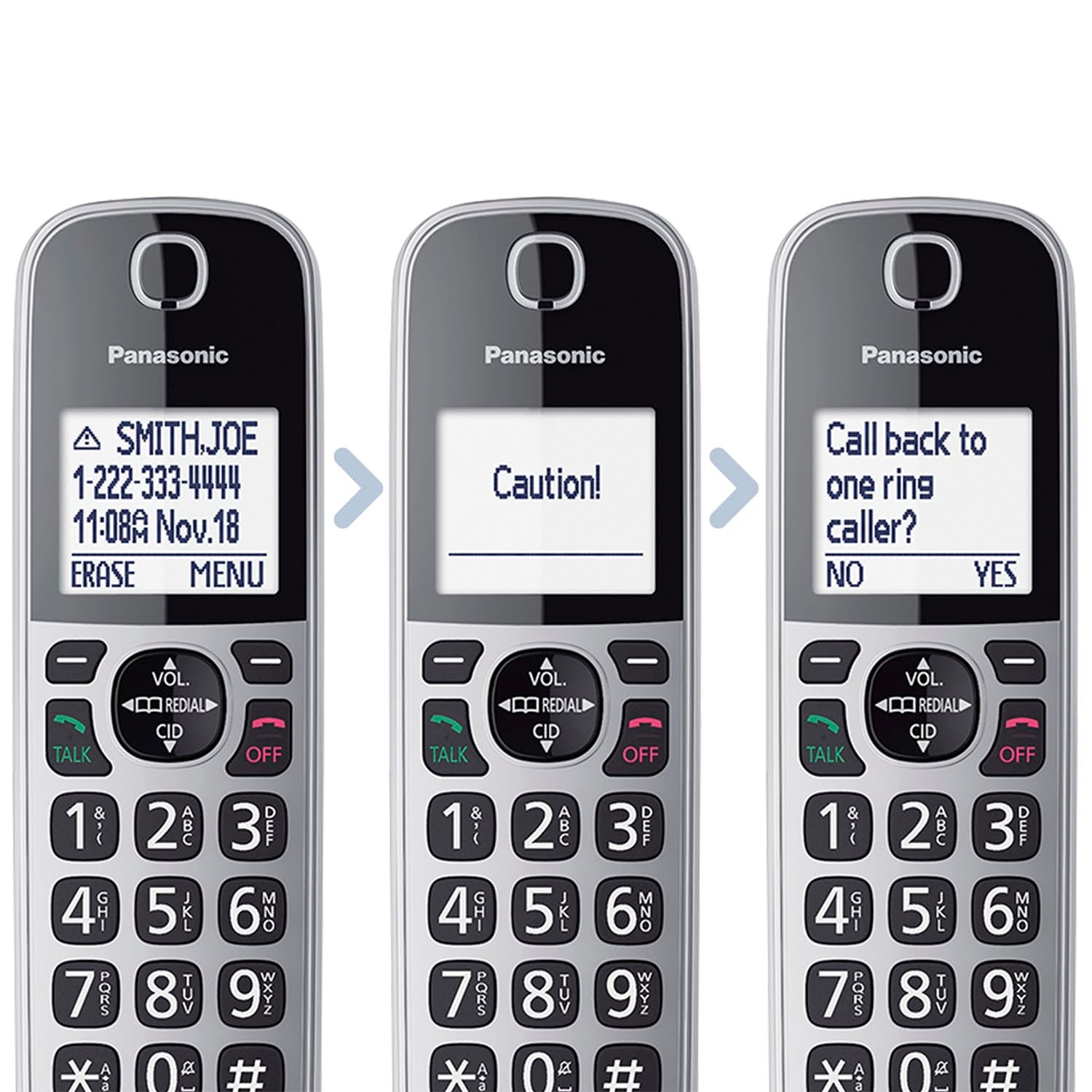 Enjoy calls at home -- no nuisance calls -- with cordless home phone KX-TG3824. Four handsets (expandable up to 6 handsets) ensure you can take calls anywhere in the home; Smart Call Block features make it easier than ever to block telemarketers (up to 1,000); One-Ring Scam alerts make sure every one-ring call is wanted. Plus talking Caller ID; answering machine (17 minutes); and more.