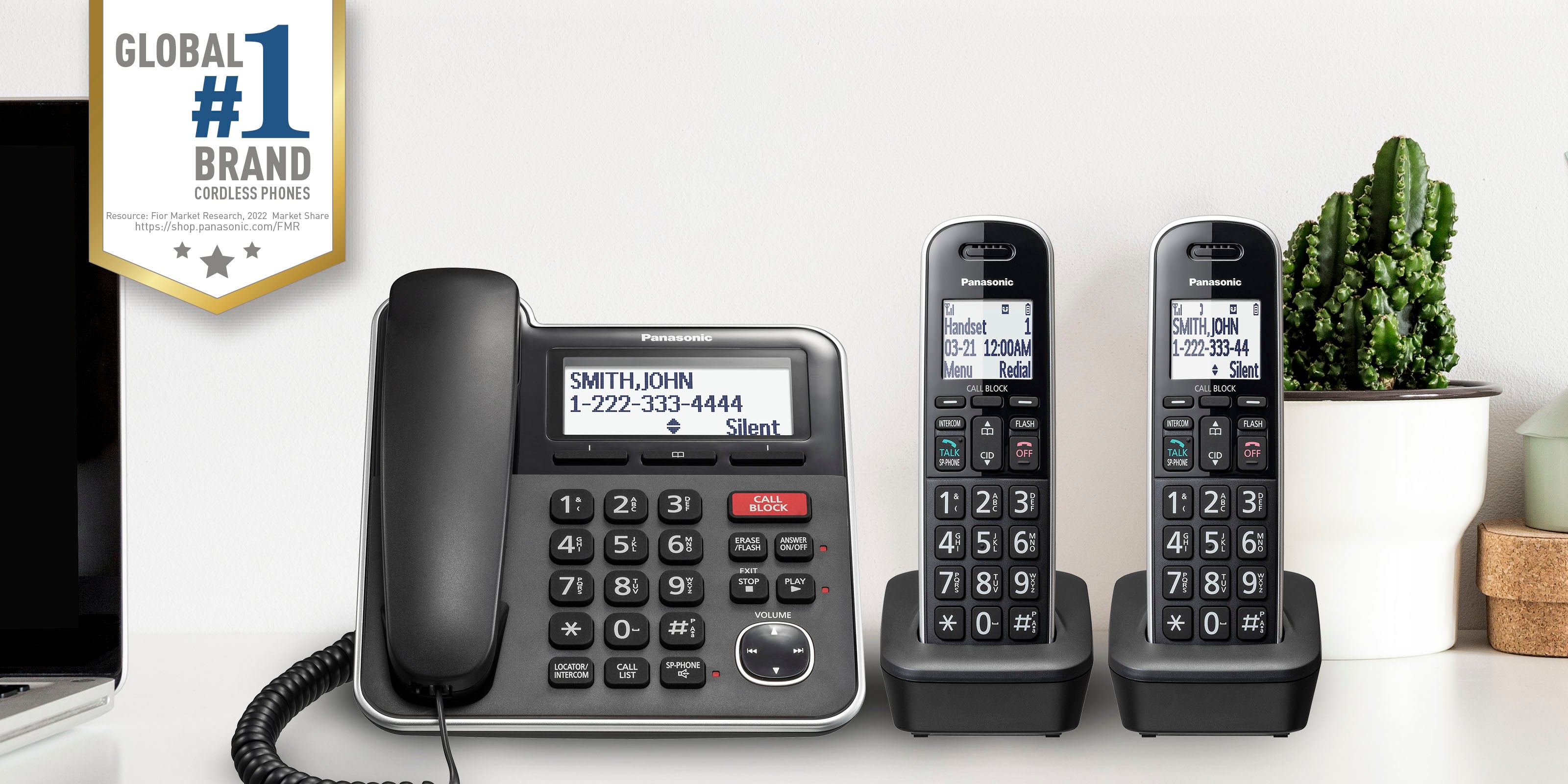 - Telephone system provides both a sturdy base unit and a light, compact handset for office or home; connect additional cordless handsets (KX-TGBA85, sold separately)