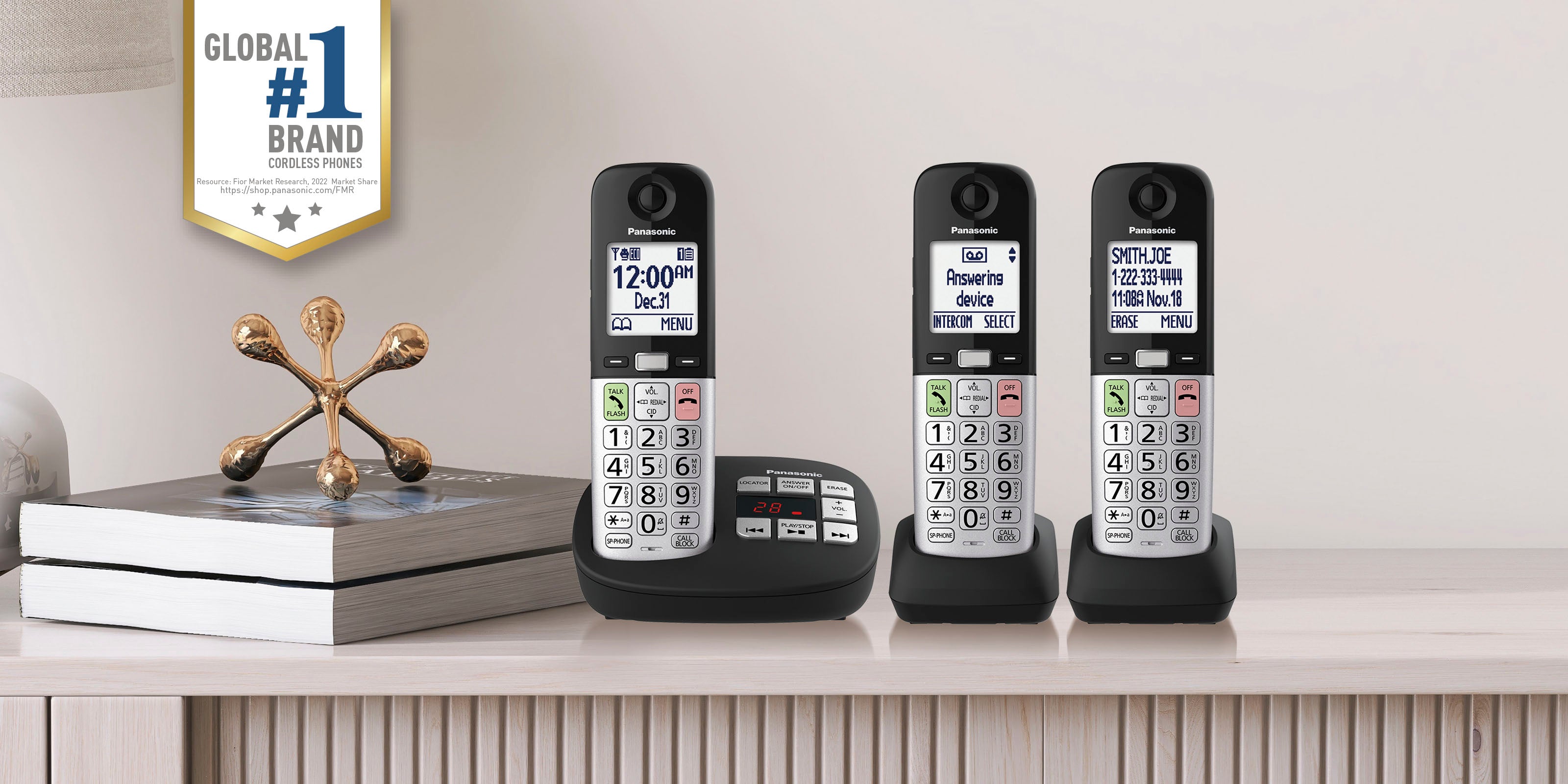 Panasonic KX-TGU4 cordless landline phone features a large 2.1" screen and buttons, along with a Favorites Key for easy access to incoming, missed, and three most-dialed numbers. The flashlight function is convenient for nighttime wake-ups and emergencies. Enhance call clarity with the ability to amplify calls up to +12dB and a Talking Caller ID that announces calls. Its robust call blocking functions also effectively keep nuisance callers at bay.