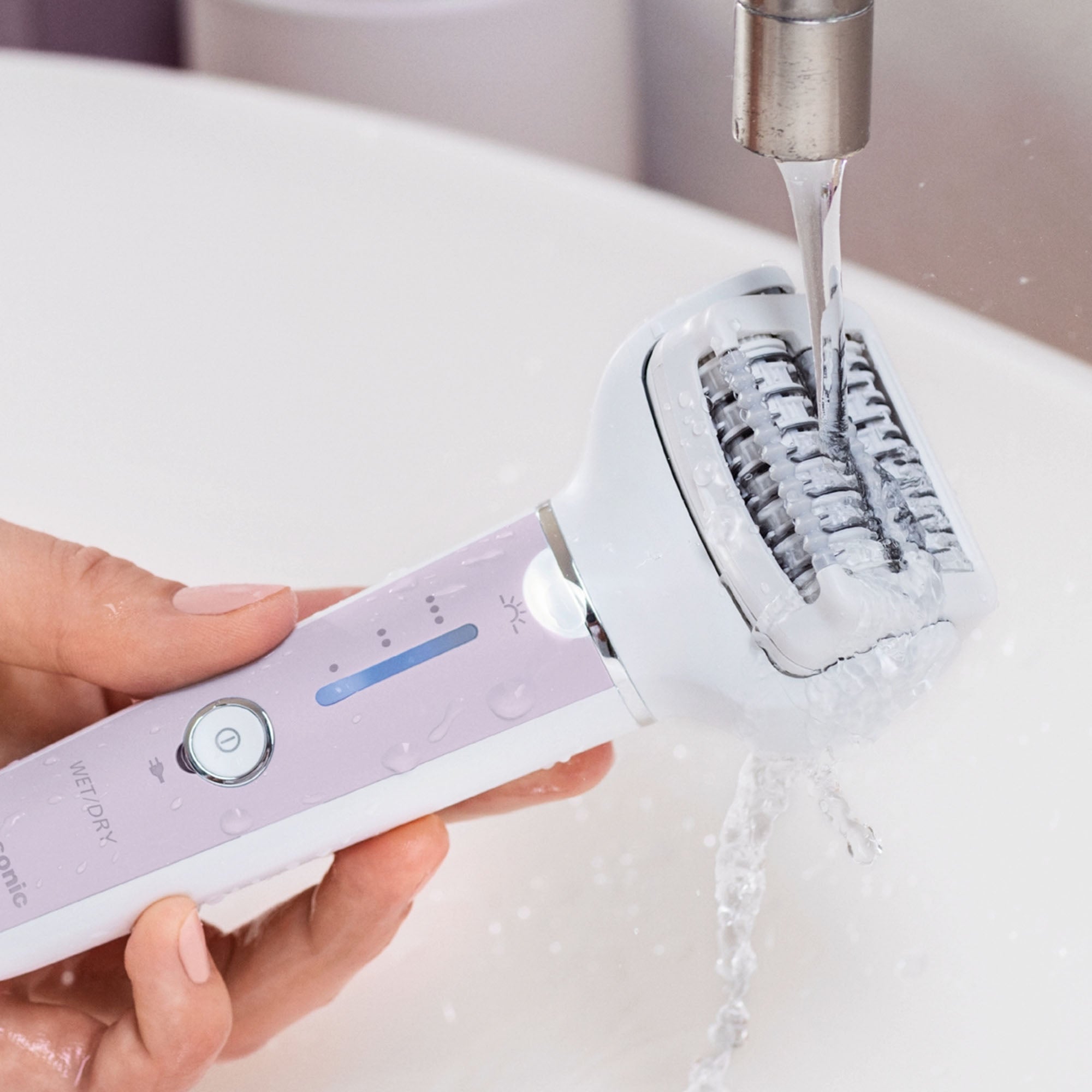 - A sleek, waterproof wet dry design makes it easy to remove hair in the bath or shower, or dry anytime. For gentler, smoother epilation simply apply bath gel to the epilator head to create a rich, soothing foam