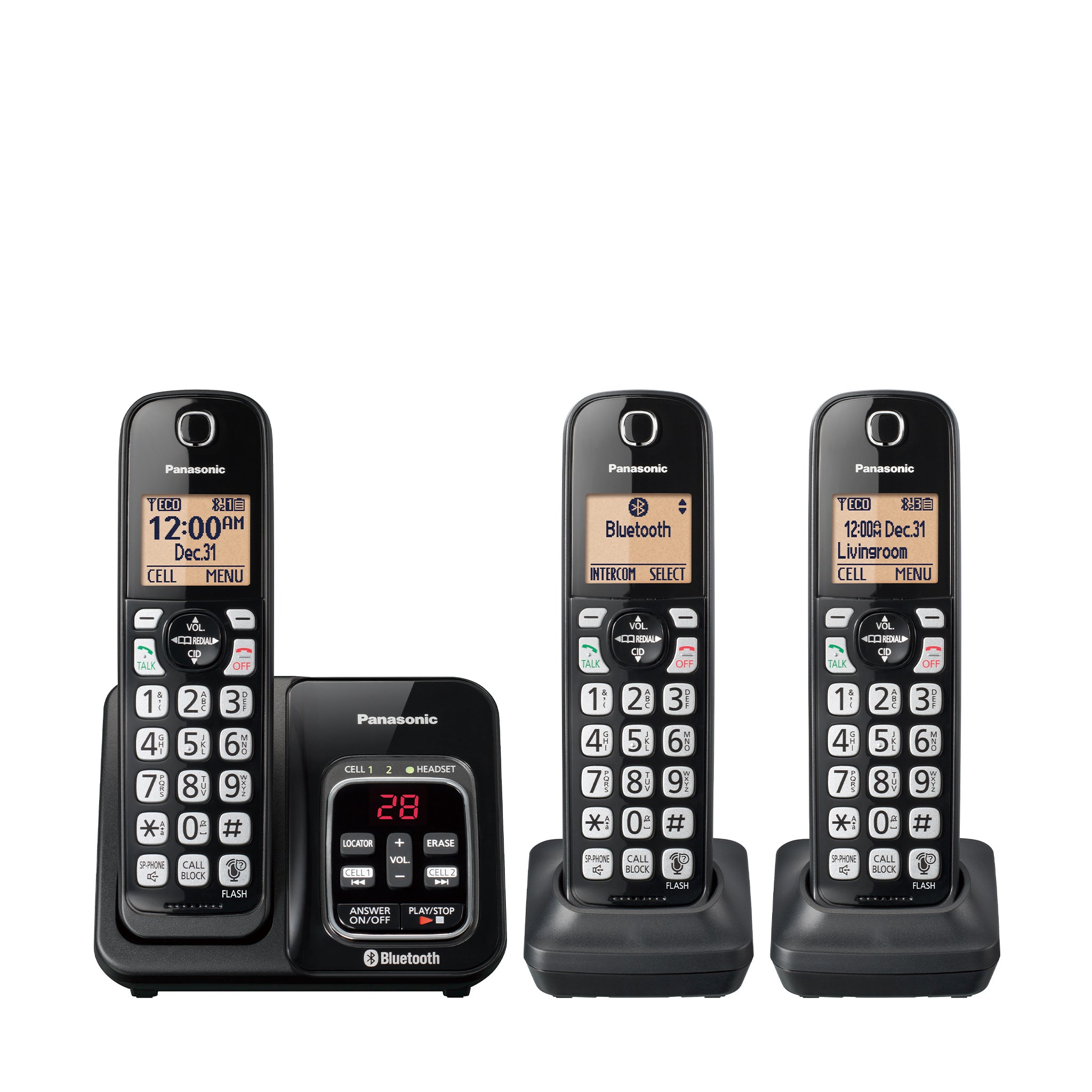 The KX-TG833SK 3-Handset Cordless Phone features Link2Cell so you can make or receive mobile calls through handset units for call clarity even in cell dead zones. A dedicated Call Block button on each handset to easily block robocalls or other unwanted callers. Talking Caller ID; answering system with voicemail; Intelligent Eco mode; white LCD backlit display. Expandable up to six handsets.