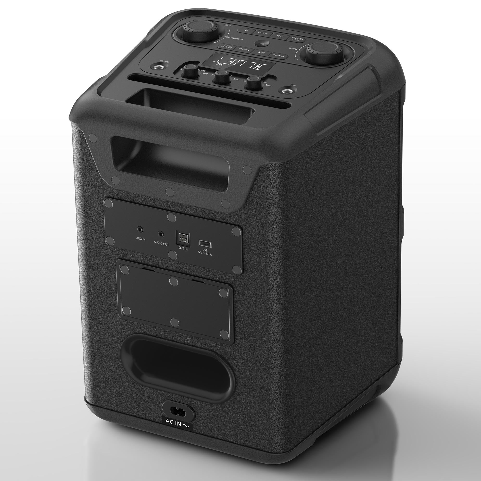 - Featuring 14cm woofers, tweeters, and bass reflex ports, this partybox delivers 75W of rich, powerful sound; with multicolor lighting and Bass Boost for deep lows, it’s perfect for music lovers and party vibes