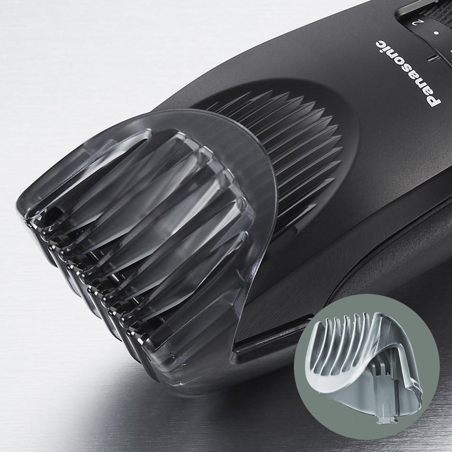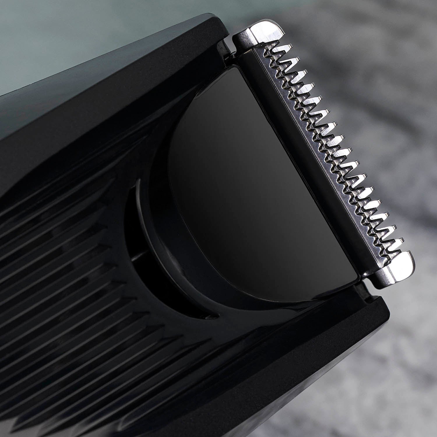 Power meets precision with ER-SB40 Men's Trimmer. A high-performance linear motor makes 9,800 cuts per minute, powering ultra-sharp blades through even thick, dense hair with smoothness and ease. The advanced, wide-tipped blades are uniquely designed to capture more hair in one pass, lifting and cutting through even the most unruly hair.