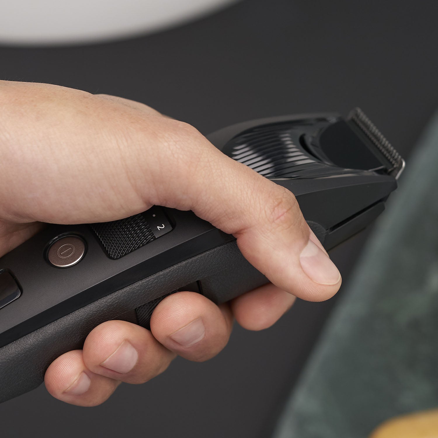 - A high-performance linear motor delivers 9,800 cuts per minute while ultra-sharp wide-tipped blades capture more hair to smoothly cut through thick, dense hair quickly with no tugging