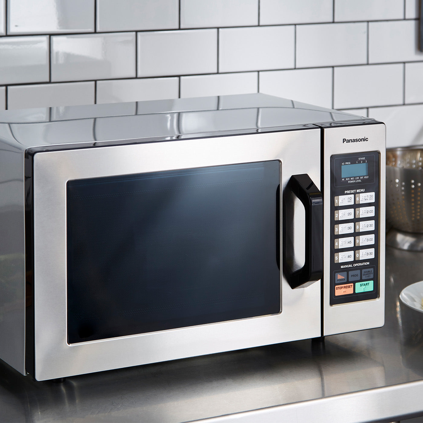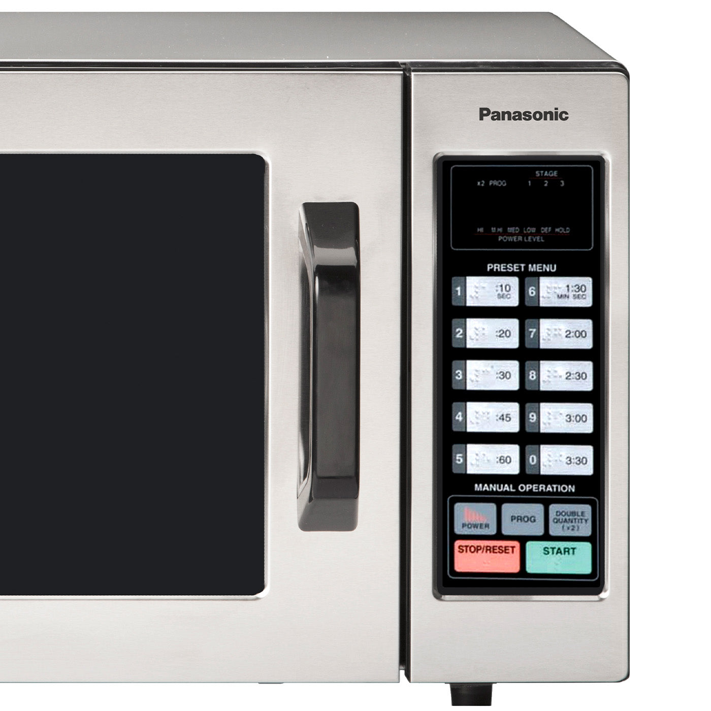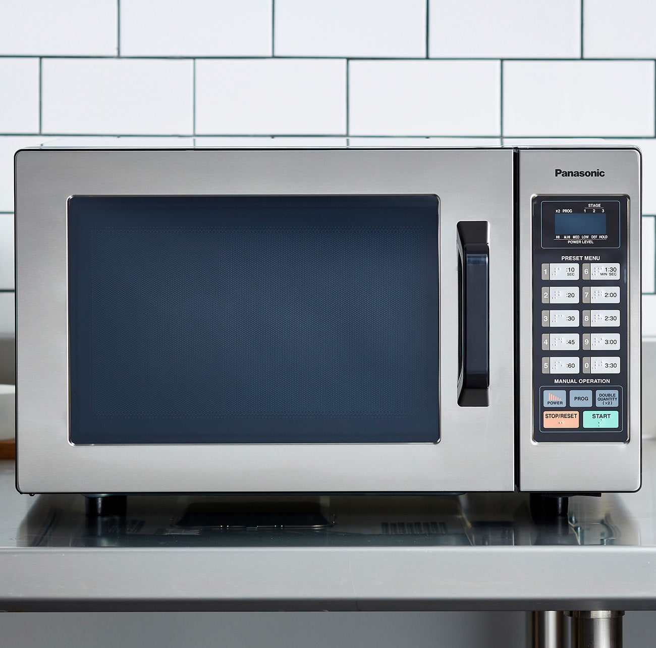 The space-saving, light-duty level Panasonic NE-1054F Commercial Microwave occupies minimal space on a countertop or table, ideal for vending, break rooms, waitress stations, front of house and more. Equipped with 1000W power and a convenient 0.8-cubic-foot interior capacity. Simple touch-control keypad makes it wasy for anyone to operate.