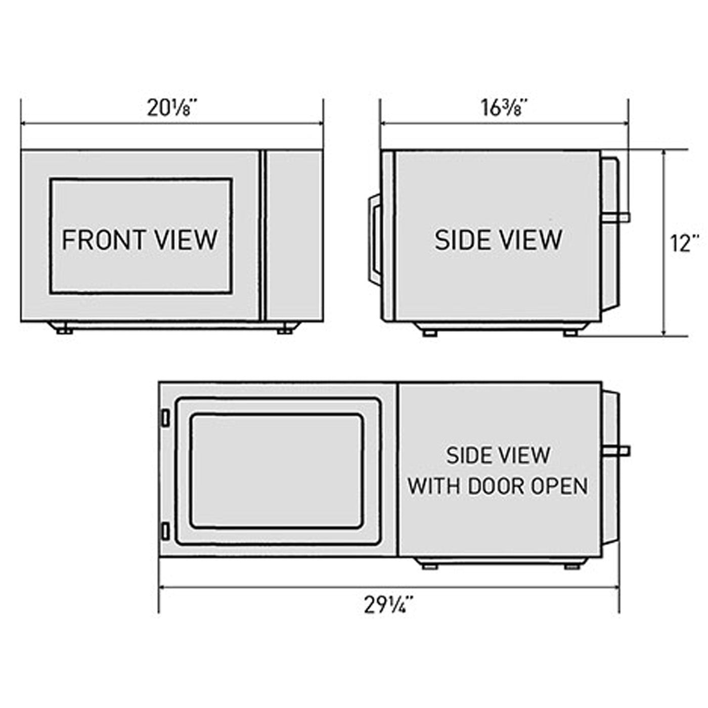 - 0.8 cubic foot compact commercial microwave occupies minimal space on a countertop or table