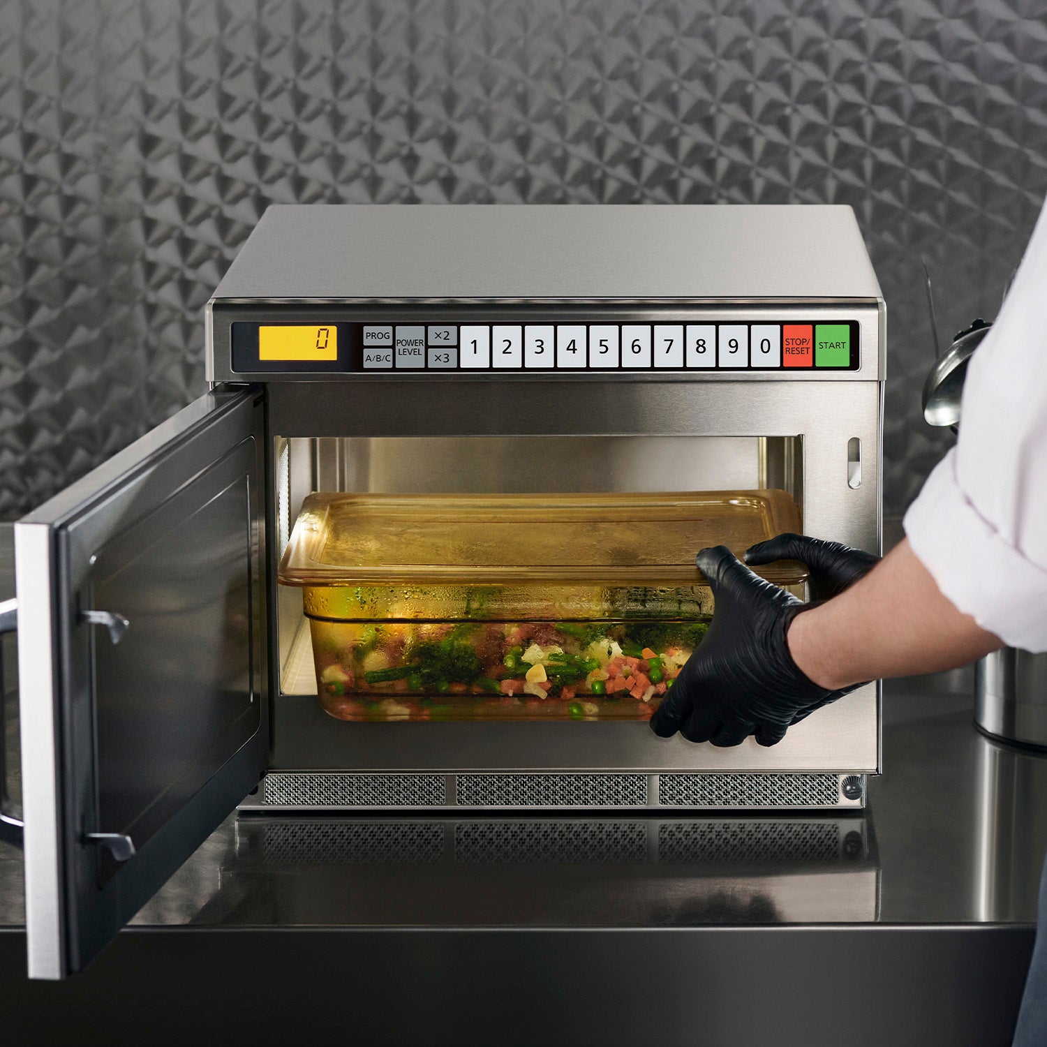 Ideal for quick-serve restaurants, casual dining, chef's line, convenience stores, gas stations, catering and more, this Panasonic Commercial microwave boasts 1700W of power with 30-programmable menus with Braille for accessibility. Five-stage cooking, and high-power from top and bottom energy feeds ensures consistent heating and cooking.