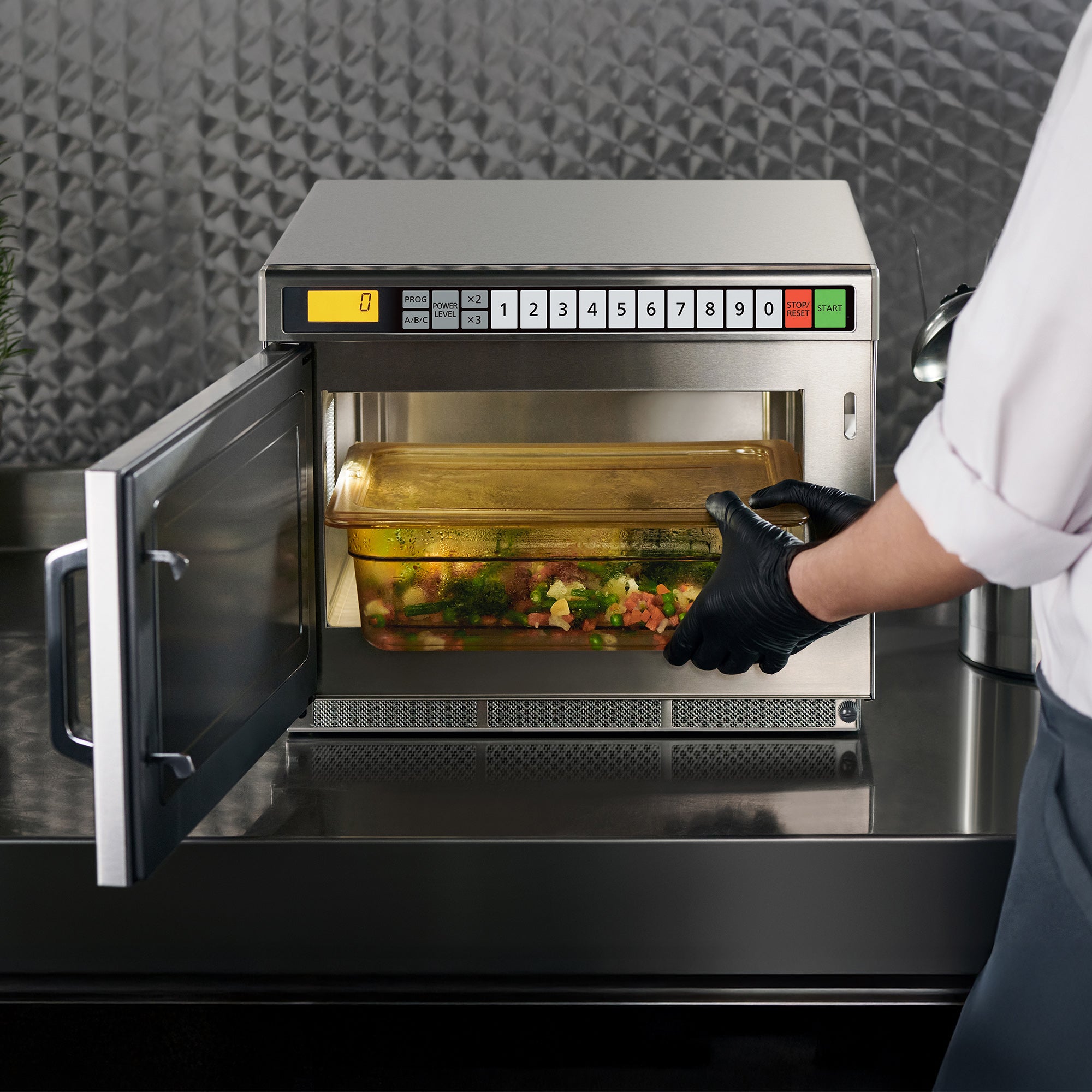 Ideal for quick-serve restaurants, casual dining, chef's line, convenience stores, gas stations, catering and more, this Panasonic Commercial microwave boasts 2100W of power with 30-programmable menus with Braille for accessibility. Five-stage cooking, and high-power from top and bottom energy feeds ensures consistent heating and cooking.