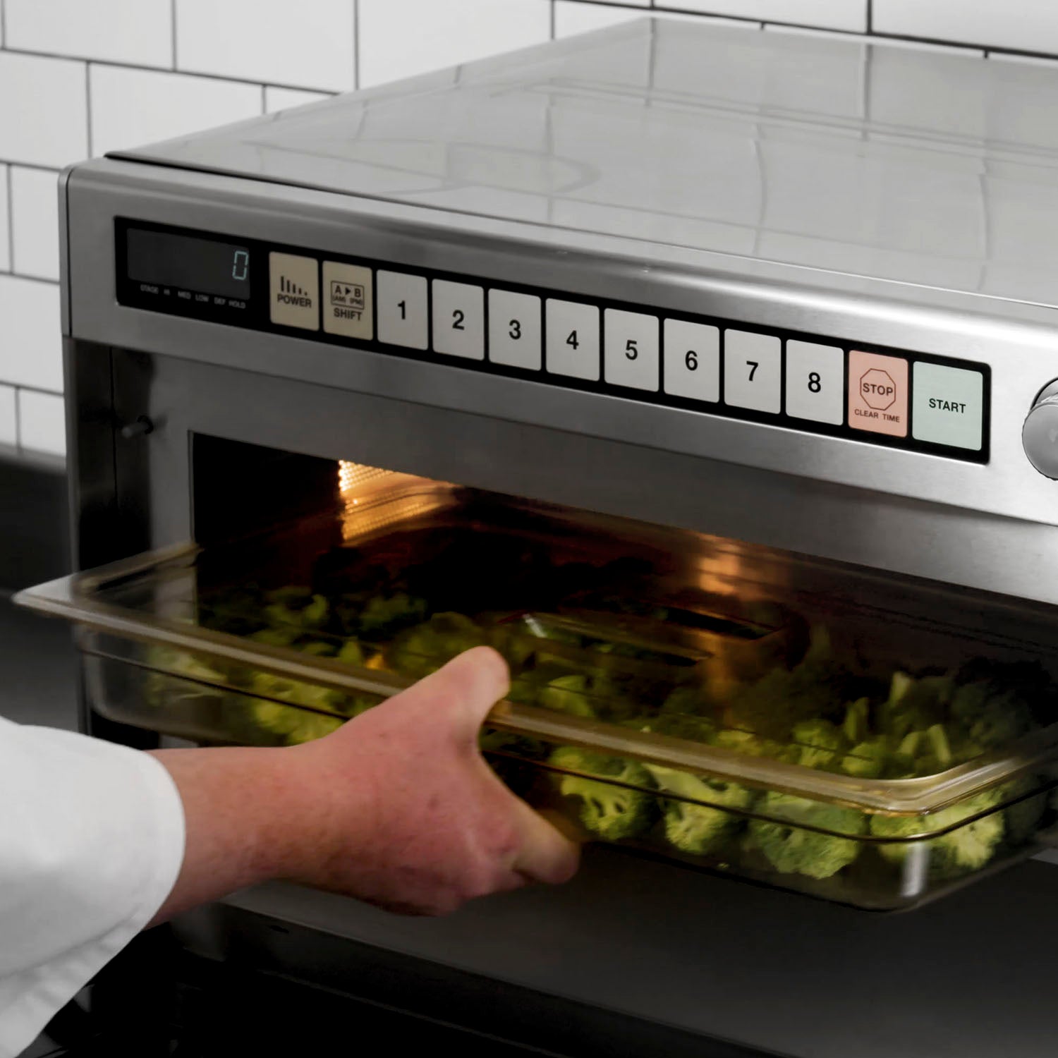 Ideal for restaurants, supermarkets, delicatessens, cafeterias, banquets and catering halls and more, the Panasonic Sonic Steamer is a ventless steam oven that provides precise heat for perfectly cooked food. Includes 4 microwave levels, and 2-level cooking with removable shelf. A programmable touchpad has 16 presets.