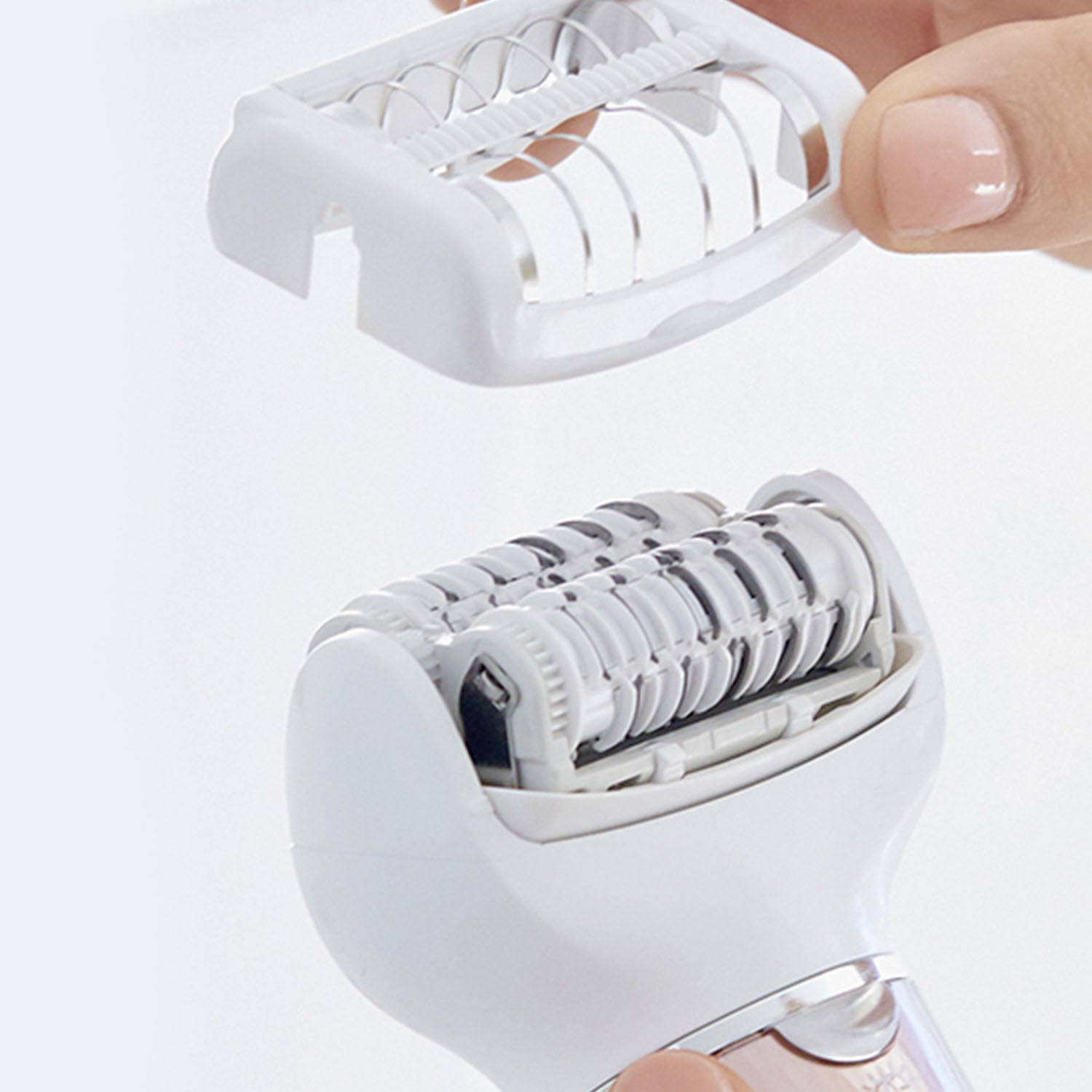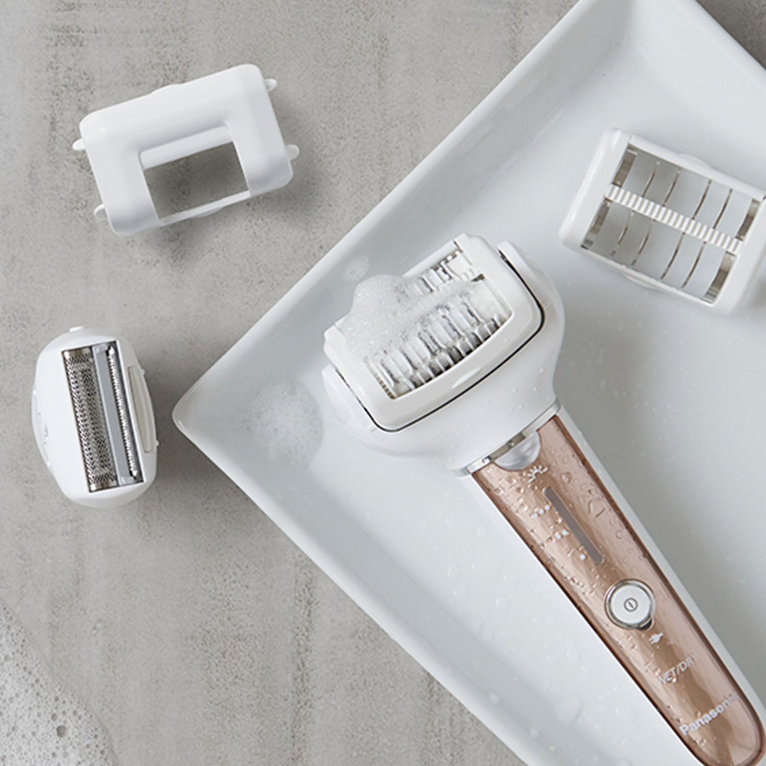 The ES-EL7A-P epilator and shaver for Women Provides easy, full-body hair removal at home. It uses five different attachments to epilate, shave and trim. Attachments include an epilation head for legs and arms; gentle cap for gentler epilation; sensitive area cap for underarms and bikini line; and shaver head with slide-up trimmer.