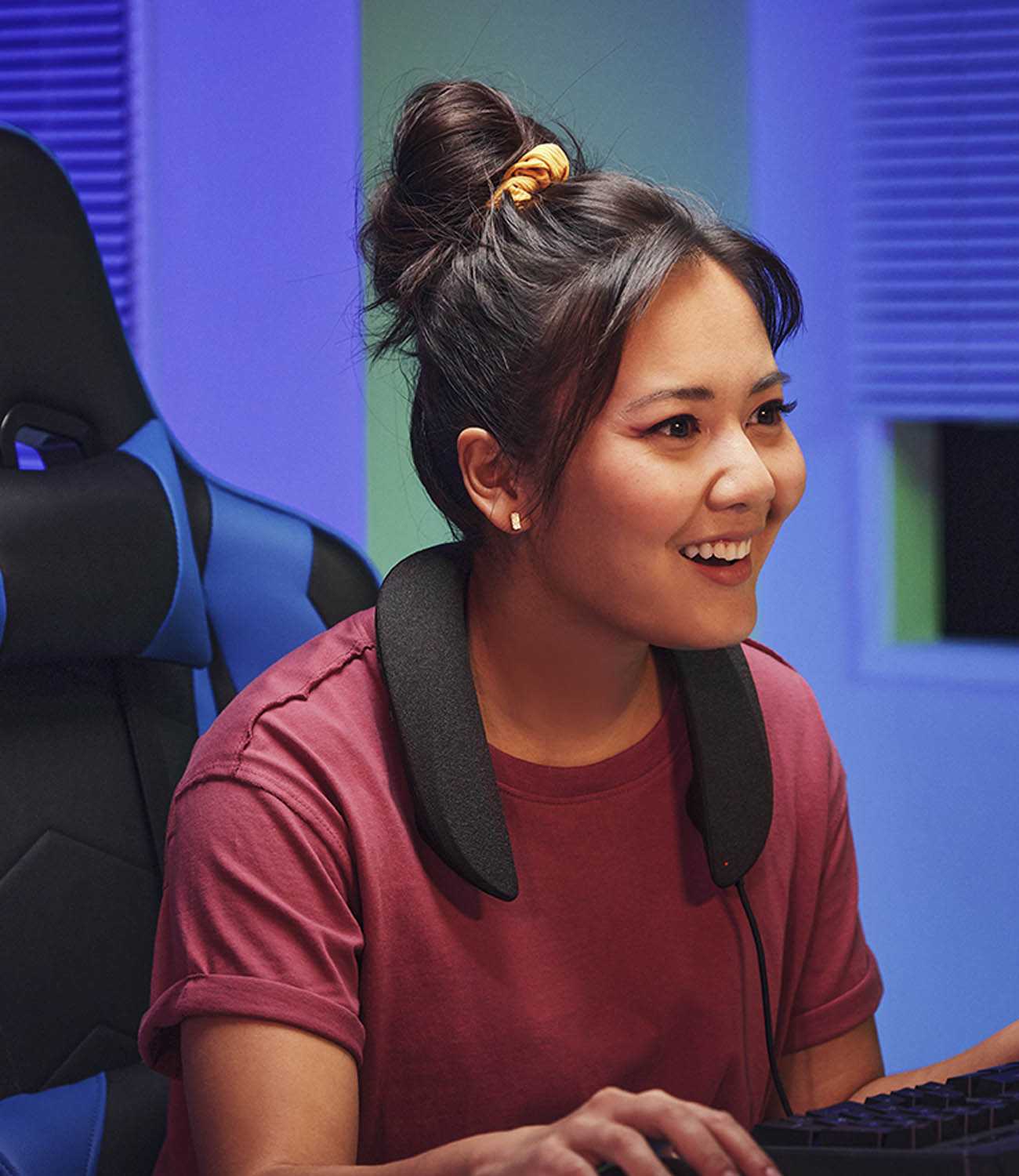 - Designed to wear on your shoulders with optimal speaker placement, so you can enjoy gameplay for long periods of time without squeezing your ears