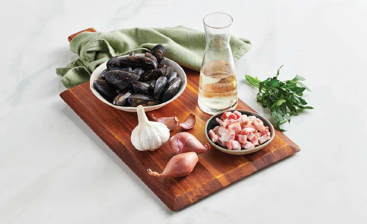 This seafood delicacy is a set it and forget it dish that requires only a handful of simple ingredients. Enjoy this eloquent ensemble of shallots, garlic, parsley and white wine that brighten and balance the delicate seafood flavors, as well as compliment the plump and juicy texture of the mussels.