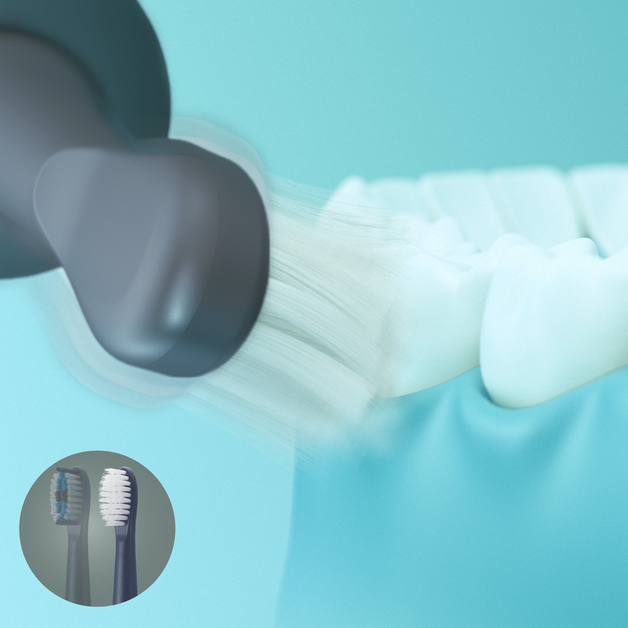 Gentle sonic vibrations clean plaque from teeth and deep within periodontal pockets, minimizing the burden on teeth and gums.