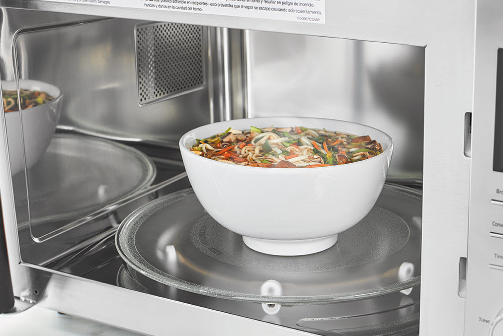 - Place bowl inside oven, close door. Press the Microwave button once (1000W). Set dial for 5 minutes. Press Start.